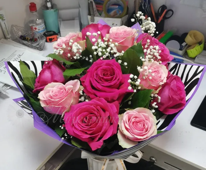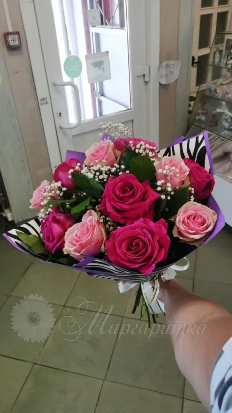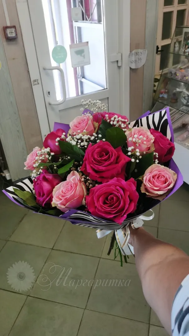 Сборный букет с розами и воздушной гипсофилы для ваших любимых
