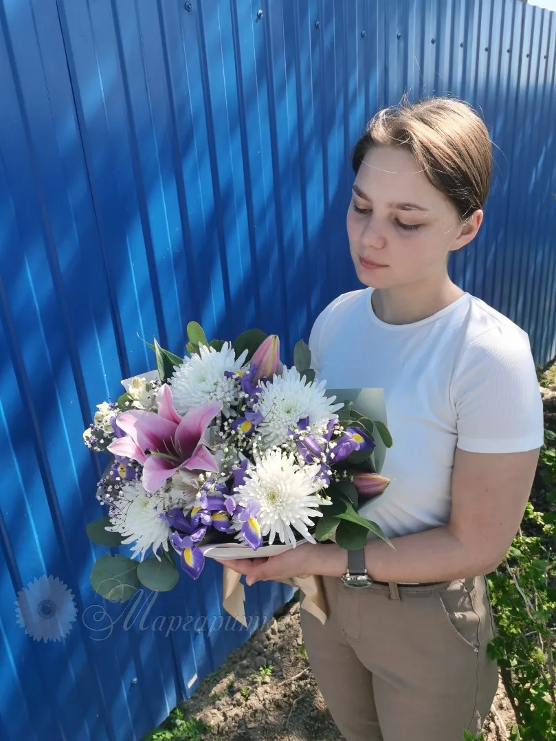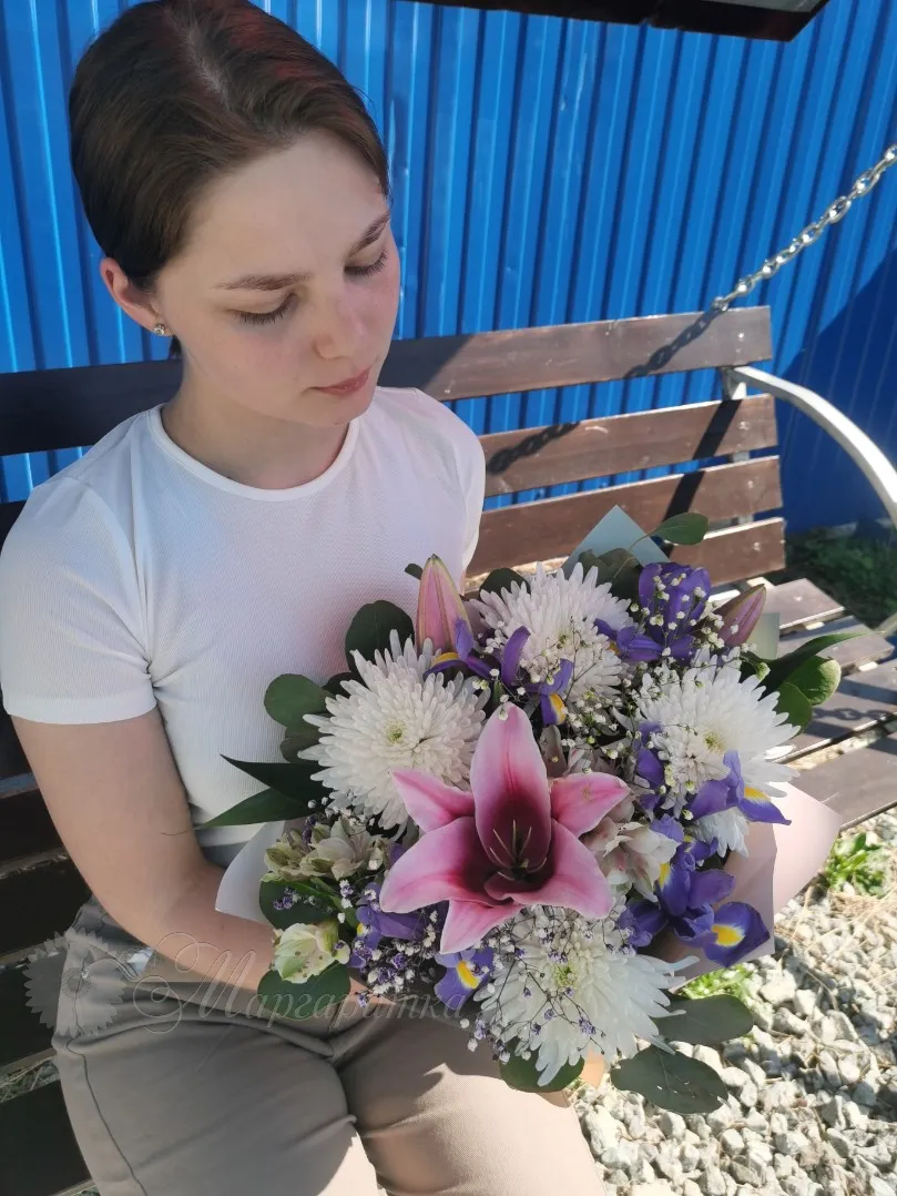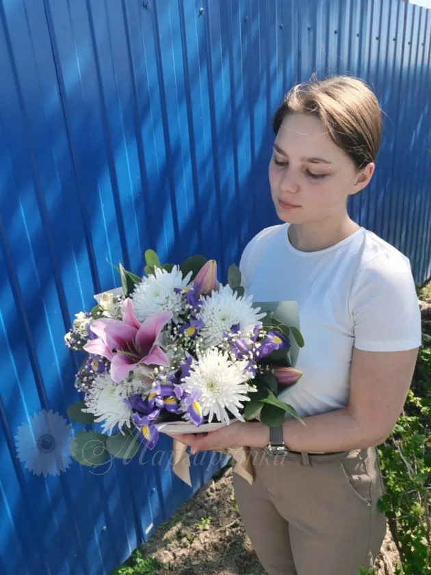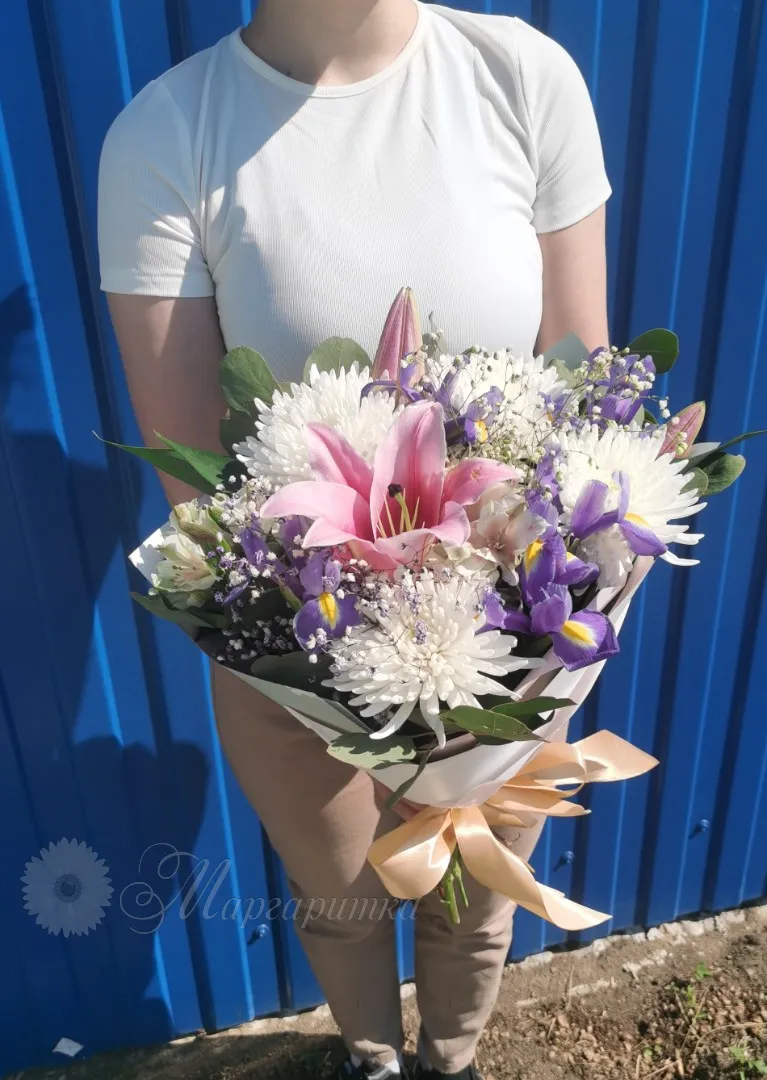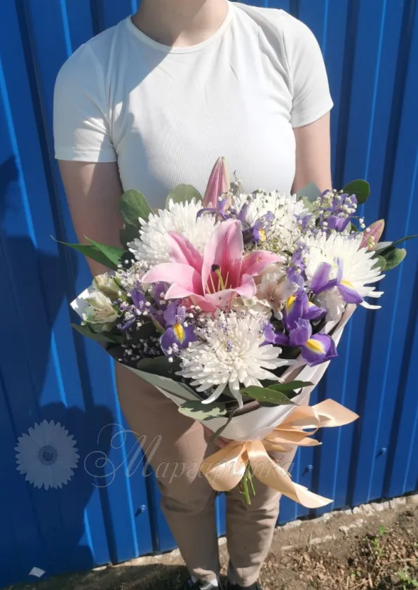 Букет с лилией и ирисами «Поляна»