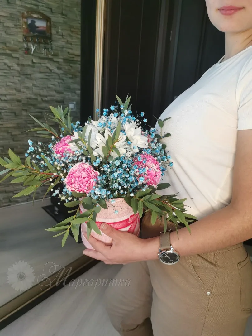 Композиция в шляпной коробке «Воздушный»