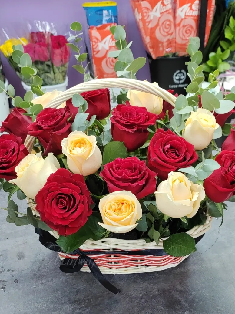 Роза - 9 шт Зелень Корзина