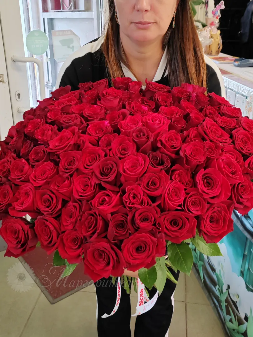 Чувственная композиция из 71 красной и белой розы